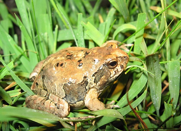 Physalaemus biligonigerus is a species of frog in the family Leptodactylidae. It is found in Argentina, Bolivia, Brazil, Paraguay, and Uruguay. Its natural habitats are subtropical or tropical dry forests, temperate shrubland, subtropical or tropical dry shrubland, subtropical or tropical moist shrubland, temperate grassland, subtropical or tropical dry lowland grassland, subtropical or tropical seasonally wet or flooded lowland grassland, freshwater lakes, intermittent freshwater lakes, freshwater marshes, sandy shores, arable land, pastureland, plantations, rural gardens, urban areas, heavily degraded former forest, water storage areas, ponds, irrigated land, seasonally flooded agricultural land, and canals and ditches.