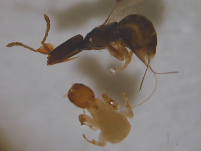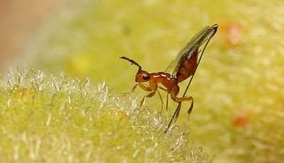 The family Agaonidae is a group of pollinating and nonpollinating fig wasps. They spend their larval stage inside the fruits of figs. The pollinating wasps (Agaoninae, Kradibiinae, and Tetrapusiinae) are the mutualistic partners of the fig trees. The nonpollinating fig wasps are parasitic. Extinct forms from the Eocene and Miocene are nearly identical to modern forms, suggesting that the niche has been stable over geologic time.