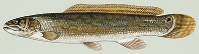 The Amiiformes order of fish has only one extant species, the bowfin (Amia calva). These Amiiformes are found in the freshwater systems of North America, in the United States and parts of southern Canada. They live in freshwater streams, rivers, and swamps. Bowfins are not on the endangered list. They have the ability to go to the surface to breathe air if the water level is too low. Characteristics of Amiiformes are a cylindrical body with a long dorsal fin, single gular plate, heterocercal caudal fin, 10 to 13 flattened branchiostegal rays, maxilla included in gape, and prominent ocellus near upper base of caudal fin.