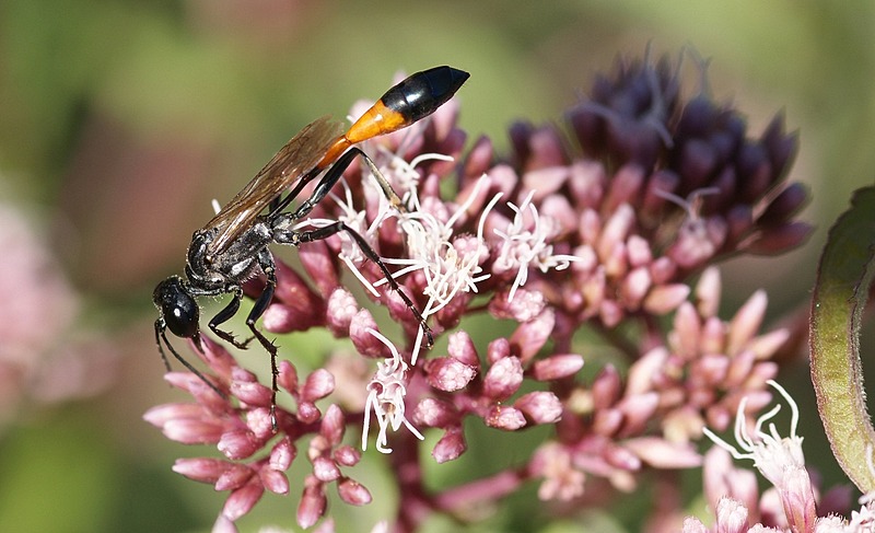 Ammophila sabulosa, the red-banded sand wasp, is a species of the subfamily Ammophilinae of the hunting wasp family Sphecidae. Found in northern Europe, the wasp is notable for the mass provisioning behaviour of the females, hunting caterpillars mainly on sunny days, paralysing them with a sting, and burying them in a burrow with a single egg. The species is also remarkable for the extent to which females parasitise their own species, either stealing prey from nests of other females to provision their own nests, or in brood parasitism, removing the other female's egg and laying one of her own instead.