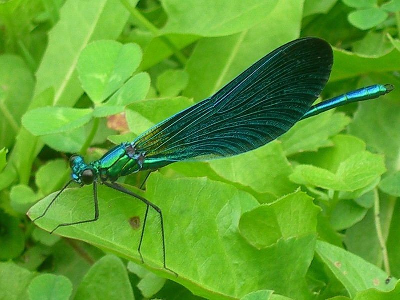 The beautiful demoiselle (Calopteryx virgo) is a European damselfly belonging to the family Calopterygidae. It is often found along fast-flowing waters where it is most at home.