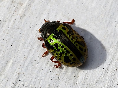 Calligrapha is a genus of large American Chrysomelinae (a subfamily of leaf beetles) of imprecise taxonomic boundaries. Most species occur in Central and South America.