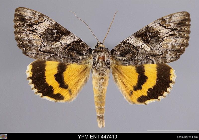 Catocala piatrix, the penitent underwing, is a moth from North America. The species was first described by Augustus Radcliffe Grote in 1864. It is placed in subfamily Catocalinae, either of the family Noctuidae, or – if the Noctuidae are circumscribed more strictly – of family Erebidae. Within the Catocalinae, it belongs to tribe Catocalini and – if the Noctuidae are circumscribed widely – subtribe Catocalina. The wingspan of adults is about 70–80 mm. The forewings are dark brownish gray, darkest at the base, and with an oblique lighter band extending from the midwing to the leading edge near the wing base. The hindwings are yellow orange with dark hairs at the base (though these are not especially prominent) and two concentric black bands. The yellow zone separating the black bands is…