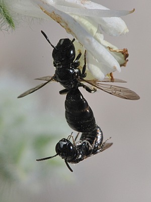 The cosmopolitan bee genus Ceratina, often referred to as small carpenter bees, is the sole lineage of the tribe Ceratinini, and closely related to the more familiar carpenter bees. They make nests in dead wood, stems, or pith, and while many are solitary, a number are subsocial, with mothers caring for their larvae, and in a few cases where multiple females are found in a single nest, daughters or sisters may form very small, weakly eusocial colonies (where one bee forages and the other remains in the nest and lays eggs). One species is unique for having both social and asocial populations, Ceratina australensis, which exhibits all of the pre-adaptations for successful group living. This species is socially polymorphic with both solitary and social nests collected in sympatry. Social…