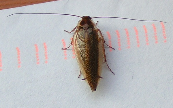 The amber wood cockroach Ectobius vittiventris belongs to the order Blattodea. It is a species of wood cockroach originally from southern Europe . It is completely harmless to humans and does not appear as a storage pest, as it only feeds on decomposing plant material and perishes within a few days in human dwellings due to a lack of food. Its original range is south of the Alps, but this species seems to have established itself permanently north of the Alps and in southern Germany. Since the amber forest cockroach is capable of flight, it accidentally finds its way into human dwellings, especially in areas close to its natural habitat. It is attracted by artificial light sources.