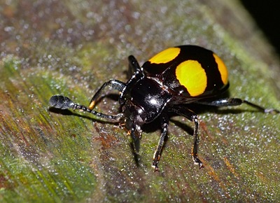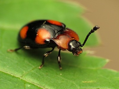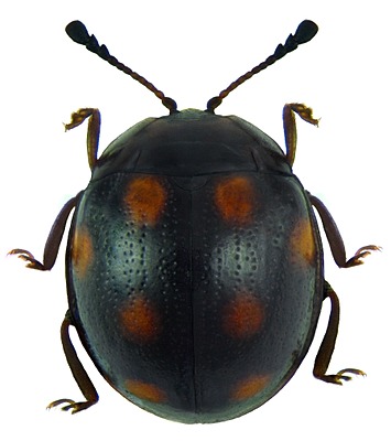 Endomychidae, or handsome fungus beetles, is a family of beetles with representatives found in all biogeographic realms. There are around 120 genera and 1300 species. The family was established based on the type genus Endomychus, a genus erected in 1795 by Panzer which was applied to a species that Linnaeus called Chrysomela coccinea. As the common name suggests, Endomychidae feed on fungi. Crowson, in his influential treatment of the beetles, placed the family within the Cucujoidea. They have a tarsal formal of 4-4-4 or 3-3-3 and the wings lack a closed radial cell. The second antennal segment has a sensory appendage that is as long as the third antennal segment. The family has also been grouped with the Coccinellidae in a group called the Trimera for having pseudotrimerous tarsi. A 2015…