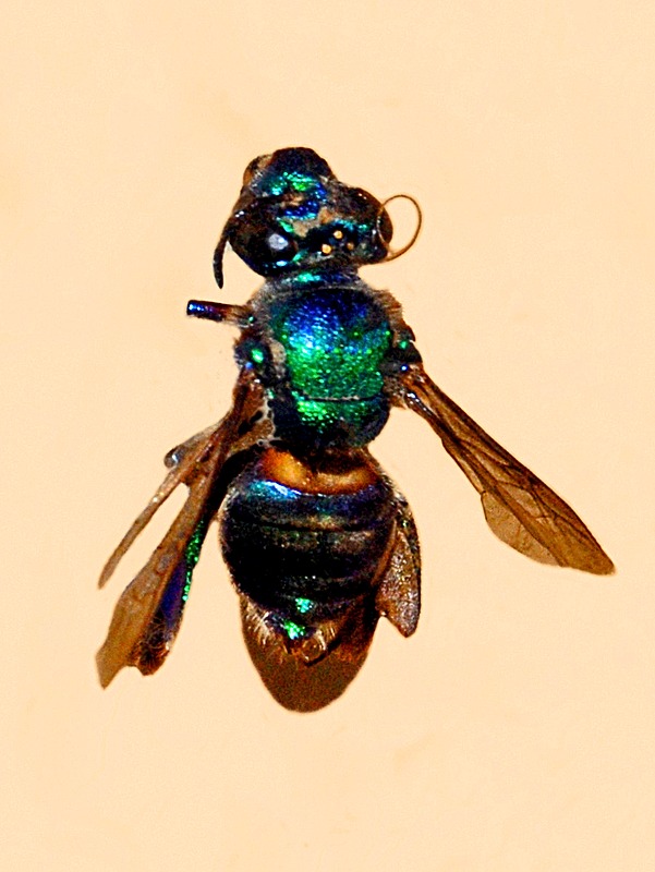Euglossa cordata is a primitively eusocial orchid bee of the American tropics. The species is known for its green body color and ability to fly distances of over 50 km. Males mostly disperse and leave their home nests, while females have been observed to possess philopatric behavior. Because of this, sightings are rare and little is known about the species. However, it has been observed that adults who pollinate certain species of orchids will become intoxicated during the pollination.
