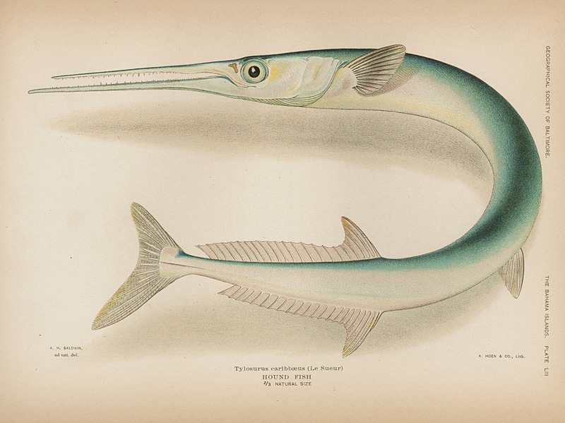The houndfish (Tylosurus crocodilus) is a game fish of the family Belonidae. It is the largest member of its family, growing up to 5 feet (1.5 m) in length and 10 pounds (4.5 kg) in weight. It is also often called the crocodile needlefish.