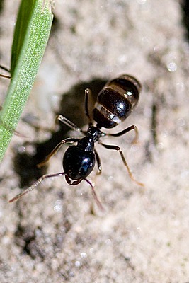 Lasius is a genus of formicine ants. The type species for this genus is the black garden ant, Lasius niger. Other major members, which live in drier heathland, are the cornfield ant, L. neoniger, and L. alienus. Other species include the temporary social parasites of the L. mixtus group and the hyper-social parasite Lasius fuliginosus. Lasius flavus is also a commonly seen species, building grassy hillocks in undisturbed pasture. In the Alps, these mounds - always aligned east to catch the first rays of the rising sun - have been traditionally used by goatherds as natural compasses.