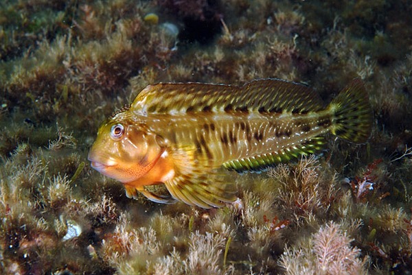 The molly miller (Scartella cristata) is a species of fish of the family Blenniidae (combtooth blennies) in the order Perciformes. It can be found in the Atlantic, Mediterranean, and northwest Pacific Oceans. Its color is a mottled tan, white, and black covering the body and fins. The head of this fish is covered with short hair-like appendages and has two very large eyes. This species reaches 12 cm (4.7 in) in total length.