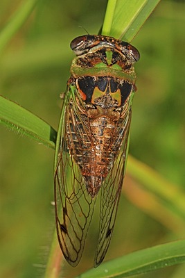 Cicadas of the genus Neotibicen are large-bodied insects of the family Cicadidae that appear in summer or early fall in eastern North America. Common names include cicada, harvestfly, jar fly,[1] and the misnomer locust.[2] Until recently, these species were all in the genus Tibicen, which was redefined in the twenty-first century to include only a few European species, while species from the Western United States and Mexico are now placed in a separate genus, Hadoa. In addition, several former Neotibicen species have been moved to the genus Megatibicen.Neotibicen species are the most commonly encountered cicadas in the eastern United States. Unlike periodical cicadas, whose appearances aboveground occur at 13- or 17-year intervals, Neotibicen species can be seen every year, hence their…