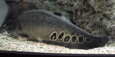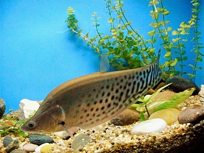 The family Notopteridae contains 10 species of osteoglossiform (bony-tongued) fishes, commonly known as featherbacks and knifefishes. These fishes live in freshwater or brackish environments in Africa and South and Southeast Asia. With the denotation of "knifefish", the notopterids should not be confused with Gymnotiformes, the electric knifefishes from South and Central America. Although their manner of swimming is similar and they are superficially similar in appearance, the two groups are not closely related. A few of the larger species, especially Chitala ornata, are food fish and occasionally aquarium pets. The name is from Greek noton meaning "back" and pteron meaning "fin".