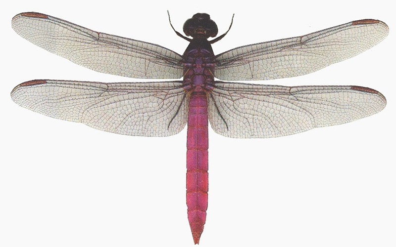 The roseate skimmer (Orthemis ferruginea) is a species dragonfly in the family Libellulidae. It is native to the Americas, where its distribution extends from the United States to Brazil. It is common and widespread. It is an introduced species in Hawaii.The male of the species has a rose pink and red abdomen. The female has an orange-brown abdomen with clear orange veins and a brownish thorax with a light stripe down the back. The wings are normally clear except for brown pterostigmata at the leading edges. Its 46-55 mm in length with a wingspan of 35-44 mm long. Males are highly territorial, defending their territory aggressively against other male roseate skimmers that fly near.It tolerates a wide range of habitat types, but usually requires open water. This can include disturbed and…