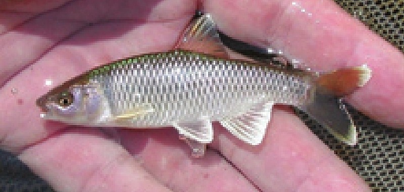 The satinfin shiner (Cyprinella analostana) is a species of fish in the family Cyprinidae, the carps and minnows. It is native to the eastern United States, where its distribution extends from New York to South Carolina. It is a common fish and not considered threatened.This fish is about 7 to 9 centimeters long, with a maximum length of 11 centimeters.It is a freshwater fish that inhabits rivers and creeks, sometimes entering pools and riffles, and found from headwaters to areas near tidal influence. It eats insects, especially flies and mayflies. Spawning occurs in spring and summer, with individuals spawning several times over a season. The eggs are laid in cracks and crevices, under rocks, and on tree roots and wood debris. The male guards them until the young emerge in about one to…
