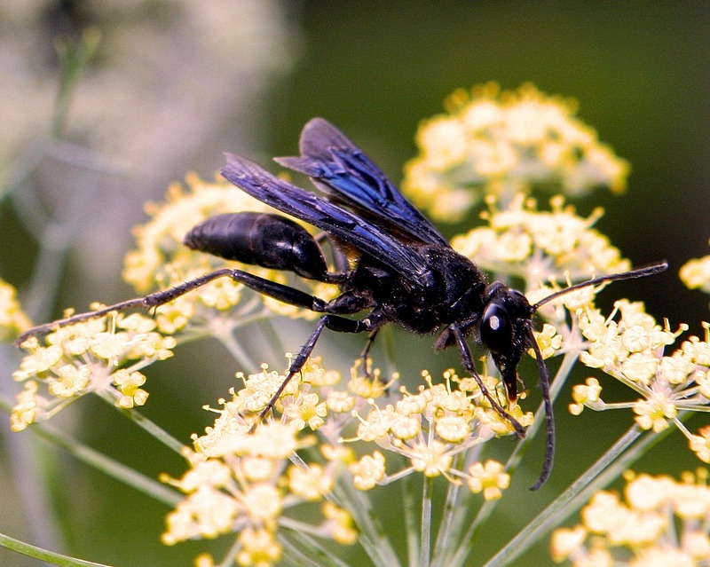 Sphex pensylvanicus, the great black wasp, is a species of digger wasp. It lives across most of North America and grows to a size of 20–35 mm (0.8–1.4 in). The larvae feed on living insects that the females paralyze and carry to the underground nest.