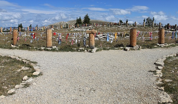 The Medicine Wheel is a Native American sacred site where hundreds of limestone rocks were placed in the shape of a wheel roughly 80 feet in diameter. Who placed the rocks there and why remains a mystery, but Native American people still utilize the trail to practice their traditional ceremonies. Several prehistoric trails on