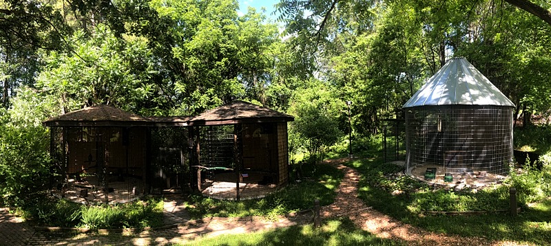 An aviary is a large enclosure for confining birds. Unlike birdcages, aviaries allow birds a larger living space where they can fly; hence, aviaries are also sometimes known as flight cages. Aviaries often contain plants and shrubbery to simulate a natural environment.