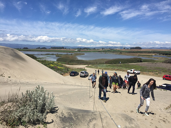 The parking lot features a restroom and a trash bin. In order to access the beach one must climb a wide sandy trail up the side of an enormous sand dune. The reward is being able to have a wide stretch of beach to yourself.