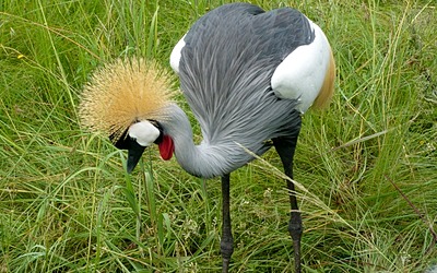 The bird genus Balearica (also called the crowned cranes) contains two extant species in the crane family Gruidae: the black crowned crane (B. pavonina) and the grey crowned crane (B. regulorum).The species today occur only in Africa, south of the Sahara Desert, and are the only cranes that can nest in trees. This habitat is one reason the relatively small Balearica cranes are believed to closely resemble the ancestral members of the Gruidae. Like all cranes, they eat insects, reptiles, and small mammals.