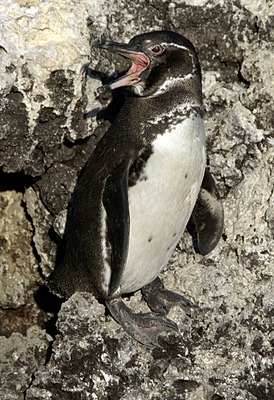 The banded penguins are penguins that belong to the genus Spheniscus. There are four living species of penguins known as banded penguins, and all have similar coloration. They are sometimes also known as "jack-ass penguins" due to their loud locator calls sounding similar to a donkey braying. Common traits include a band of black that runs around their bodies bordering their black dorsal coloring, black beaks with a small vertical white band, distinct spots on their bellies, and a small patch of unfeathered or thinly feathered skin around their eyes and underdeveloped fluff sack that can be either white or pink. All members of this genus lay eggs and raise their young in nests situated in burrows or natural depressions in the earth.