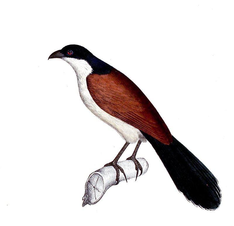 The blue-headed coucal (Centropus monachus) is a species of cuckoo in the family Cuculidae. It is native to tropical central Africa where its typical habitat is swamps, river banks, forest edges and generally wet locations. It is a common bird with a wide range, and the International Union for Conservation of Nature has rated its conservation status as being of "least concern".