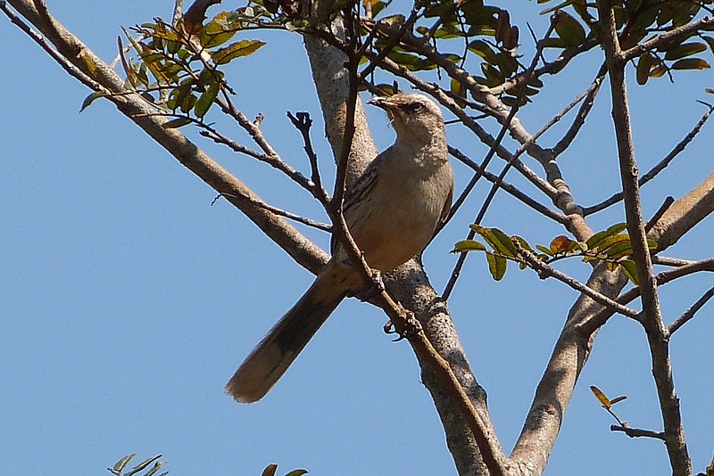 The chalk-browed mockingbird (Mimus saturninus) is a bird found in most of Brazil, and parts of Bolivia, Uruguay, Paraguay, Argentina, and Suriname. It's a bird of open wooded areas, including urban and suburban gardens. It feeds on fruits, insects and small vertebrates.It has a large range (around 7,200,000 km²), and although its population has not been thoroughly surveyed, it is believed to be large as it is reported as "common" in parts of its range. It has been classified as Least concern by the IUCN. (BLI 2004)