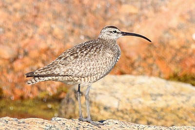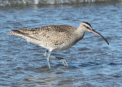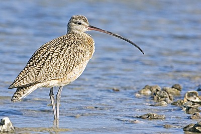 The curlews (), genus Numenius, are a group of nine species of birds, characterised by long, slender, downcurved bills and mottled brown plumage. The English name is imitative of the Eurasian curlew's call, but may have been influenced by the Old French corliu, "messenger", from courir , "to run". It was first recorded in 1377 in Langland's Piers Plowman "Fissch to lyue in þe flode..Þe corlue by kynde of þe eyre". In Europe "curlew" usually refers to one species, the Eurasian curlew Numenius arquata. They are one of the most ancient lineages of scolopacid waders, together with the godwits which look similar but have straight bills.Curlews feed on mud or very soft ground, searching for worms and other invertebrates with their long bills. They will also take crabs and similar…