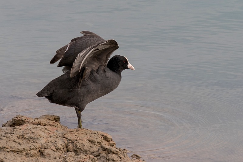 The Eurasian coot (Fulica atra), also known as the common coot, or Australian coot, is a member of the rail and crake bird family, the Rallidae. It is found in Europe, Asia, Australia, New Zealand and parts of North Africa. It has a slaty-black body, a glossy black head and a white bill with a white frontal shield. The sexes are similar.