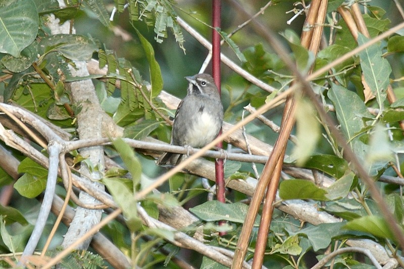 The five-striped sparrow (Amphispizopsis quinquestriata) is a medium-sized sparrow. It is the only member of the genus Amphispizopsis. It was formerly classified in the genus Amphispiza with the black-throated sparrow (Amphispiza bilineata). This passerine bird is primarily found along the eastern Gulf of California region and Pacific region of mainland western Mexico, with a breeding range that extends into the southern tip of the U.S. state of Arizona, the Sierra Madre Occidental mountain range containing the Madrean sky islands, of southeastern Arizona, extreme southwestern New Mexico, and northern Sonora. The species was first recorded breeding in the US in 1950s and remains a rare breeding bird.This species is a regular victim of cowbird nest parasites.