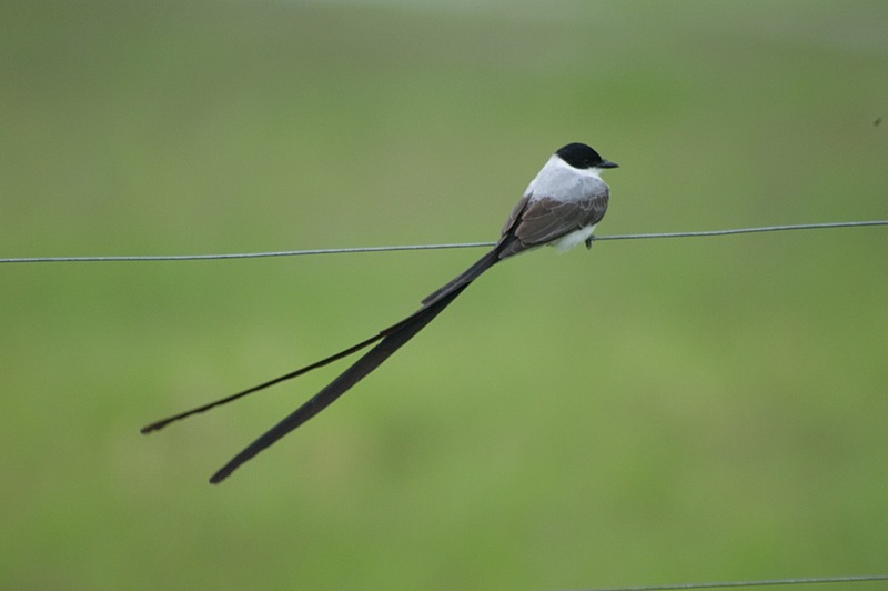 The fork-tailed flycatcher (Tyrannus savana) is a passerine bird of the tyrant flycatcher family, and is the member of a genus typically referred to as kingbirds. Named for their distinguishingly long forked tail, fork-tailed flycatchers are seen in lightly-forested or grassland areas; ranging from southern Mexico, to south past Argentina. They are most frequently observed sitting on conspicuous perches waiting for flying arthropods to fly past, they then sally out, eat their prey, and return to their perch. Northern populations near southern Mexico tend to be permanent residents, while fork-tailed flycatchers that live further south are migrants with a reputation to wander as far north as the eastern seaboard of the United States.
