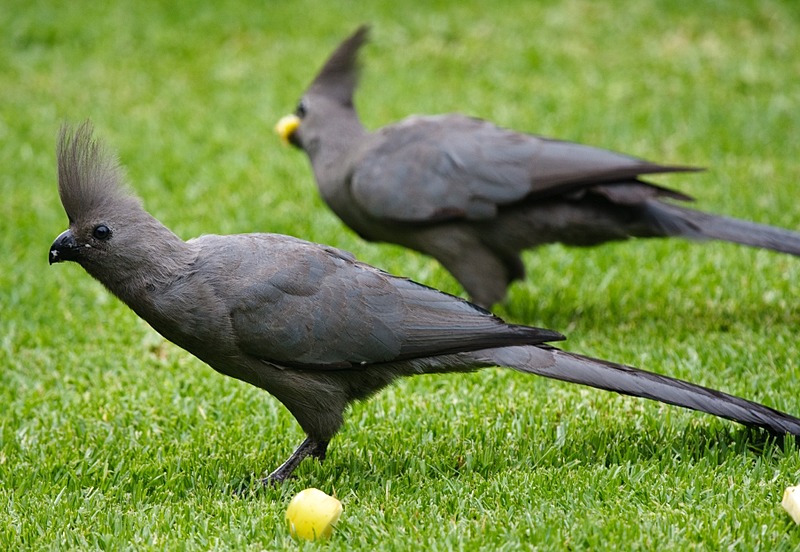 The grey go-away-bird (Crinifer concolor), also known as grey lourie, grey loerie, or kwêvoël, is a bold and common bird of the southern Afrotropics. They are present in arid to moist, open woodlands and thorn savanna, especially near surface water. They regularly form groups and parties that forage in tree tops, or dust bathe on the ground. Especially when disturbed, they make their presence known by their characteristically loud and nasal "kweh" or "go-way" calls, with the last syllable typically a descending drawl. Within range, their unique combination of appearance and habits precludes confusion with other bird species.