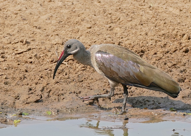 The hadada ibis (Bostrychia hagedash), also called hadeda, is an ibis native to Sub-Saharan Africa. It is named for its loud three to four note calls uttered in flight especially in the mornings and evenings when they fly out or return to their roost trees. Although not as dependent on water as some ibises, they are found near wetlands and often live in close proximity to humans, foraging in cultivated land and gardens. A medium-sized ibis with stout legs and a typical down-curved bill, the wing coverts are iridescent with a green or purple sheen. They are non-migratory but are known to make nomadic movements in response to rain particularly during droughts. Their ranges in southern Africa have increased with an increase in tree cover and irrigation in human-altered habitats.