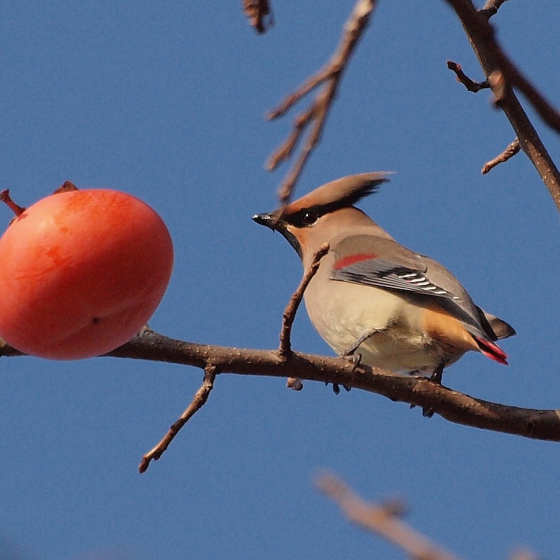 The Japanese waxwing (Bombycilla japonica) is a fairly small passerine bird of the waxwing family found in the East Palaearctic. It feeds mainly on fruit and berries but also eats insects during the summer. The nest is a cup of twigs lined with grass and moss which is built in a tree.