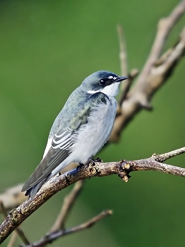 The mangrove swallow (Tachycineta albilinea) is a passerine bird in the swallow family that breeds in coastal regions from Mexico through Central America to Panama. It has blue-green upperparts, blackish flight feathers, a white rump, a black tail, and white underparts. It can be identified by the supraloral white streak, the white line near its eye, which only occurs in two other species of Tachycineta: the violet-green swallow and the white-rumped swallow. The sexes, although similar in plumage, differ slightly in size. The juveniles have grey-brown upperparts and white-washed underparts. This swallow's song is generally described as a soft trilling, with a rolled jeerrt call, and a sharp alarm note. The mangrove swallow is very territorial when breeding, much like the related tree…