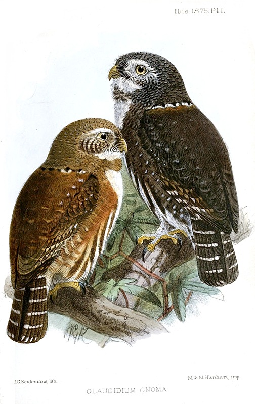 The mountain pygmy owl (Glaucidium gnoma) is a small owl from Central America. It is considered a distinct species by some authorities, including the International Ornithologists' Union. Others, including the American Ornithological Society, consider to be a subspecies of northern pygmy owl. If considered conspecific, the scientific name G. gnoma is usurped by the northern pygmy owl. The Northern Mountain Pygmy Owls’ habitats range from coniferous forests to deciduous bottomlands, and despite its large geographic distribution, “it is one of the least studied owls on the continent” (Holt & Peterson 2000). Its diet consists of small birds and mammals, and it has a reputation of being a fierce hunter. This species of owl will nest in natural cavities and in ones created by woodpeckers (Holt…