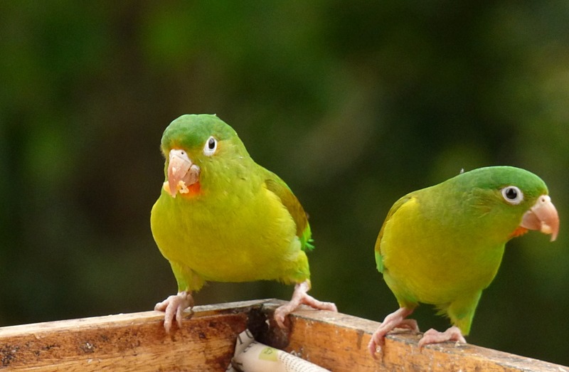 The orange-chinned parakeet (Brotogeris jugularis), also known as the Tovi parakeet, is a small mainly green parrot of the genus Brotogeris. It is found from Mexico, through Central America, to Venezuela. Its natural habitats are subtropical or tropical dry forests, subtropical or tropical moist lowland forests, and heavily degraded former forest. Its name comes from a small clump of bright orange feathers located under the lower beak. Like other parrots, it is capable of imitating simple human speech.