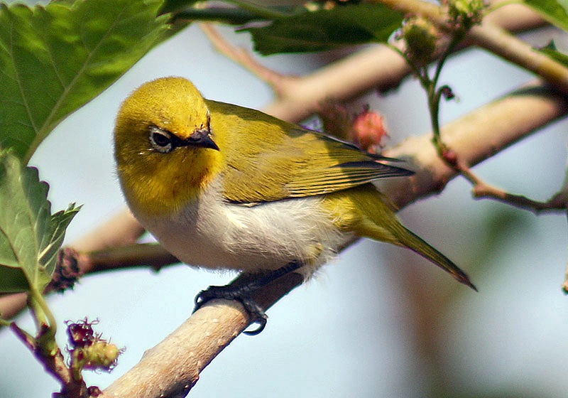 The Indian white-eye (Zosterops palpebrosus), formerly the Oriental white-eye, is a small passerine bird in the white-eye family. It is a resident breeder in open woodland on the Indian subcontinent. They forage in small groups, feeding on nectar and small insects. They are easily identified by the distinctive white eye-ring and overall yellowish upperparts. The range previously extended eastwards to Southeast Asia, Indonesia and Malaysia but when the taxa in these regions were assigned to other species, the English name was changed.