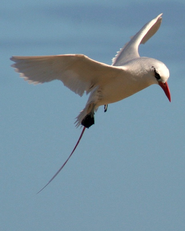The red-tailed tropicbird (Phaethon rubricauda) is a seabird native to tropical parts of the Indian and Pacific Oceans. One of three closely related species of tropicbird (Phaethontidae), it was described by Pieter Boddaert in 1783. Superficially resembling a tern in appearance, it has almost all-white plumage with a black mask and a red bill. The sexes have similar plumage. As referenced in the common name, adults have red tail streamers that are about twice their body length. Four subspecies are recognised, but there is evidence of clinal variation in body size—with smaller birds in the north and larger in the south—and hence no grounds for subspecies. The red-tailed tropicbird eats fish—mainly flying fish and squid—after catching them by plunge-diving into the ocean. Nesting takes place…