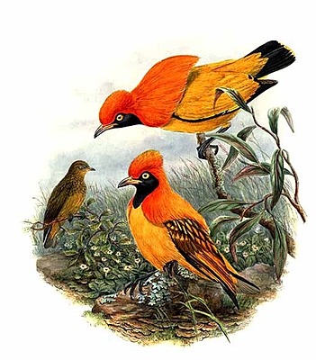 The genus Sericulus of the family Ptilonorhynchidae consists of four spectacularly colored bowerbirds. All three species build an "avenue-type" bower and are found in New Guinea and Australia.