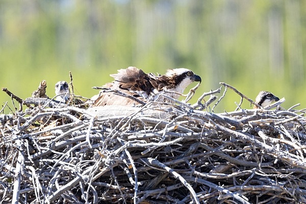 Osprey and fledglings in a nest on a foggy Yellowstone National Park morning, Jacob W. Frank (NPS) photograph above.