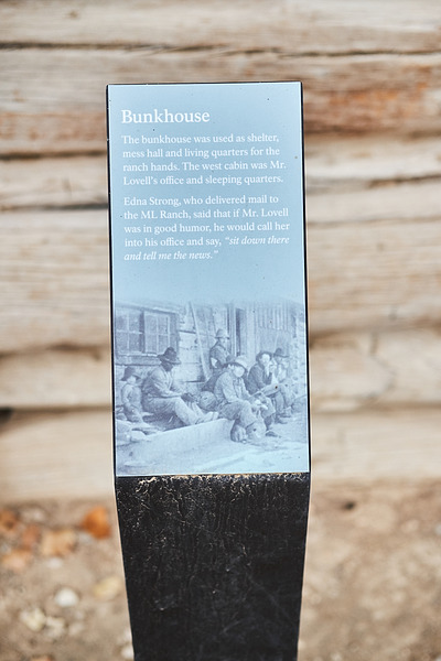 The bunkhouse was used as a shelter, mess hall and living quarters for the ranch hands. The west cabin was Mr. Lovell’s office and living quarters.