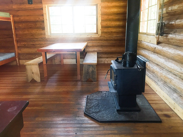 Both the cabin and adjacent vault toilet are handicapped accessible. The cabin sleeps 6 people in 3 bunkbeds that are equipped with mattresses, no bedding is provided, please bring your own. Inside the cabin, a table with benches & a wood stove for heat & a propane lantern are provided. You will need to bring a propane canister for the lantern. No liquid fueled (white gas) stoves or lanterns are allowed in the cabin or on the porch. A propane stove for cooking is suggested & can be used on a cooking counter in the cabin. There is no running water, please remember to bring water.