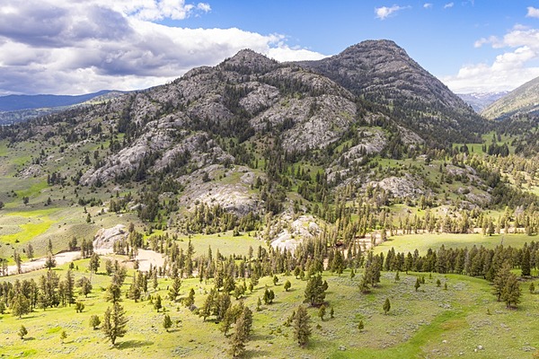 Hellroaring Mountain, Hellroaring Patrol Cabin, and Hellroaring Creek on June 13, 2022, Jacob W. Frank (NPS) photograph above.