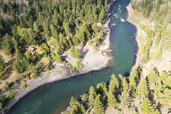 Yellowstone flood event Spring 2022: Lower Blacktail Patrol Cabin washed away, Cabin gone, shed remains (taken September 1), Jacob W. Frank (NPS) two photographs above.