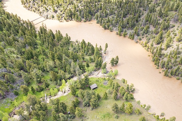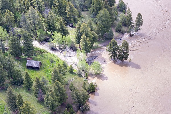 Lower Blacktail Patrol Cabin washed away while out building remains, Jacob W. Frank (NPS) June 13, 2022 three photographs above.
