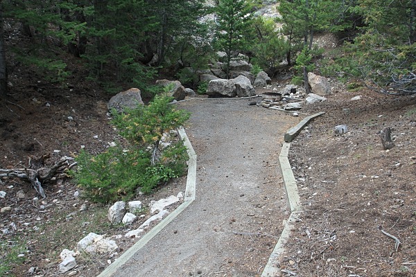 The lower loop is located 2 miles from the highway turnoff and is located right along the serene