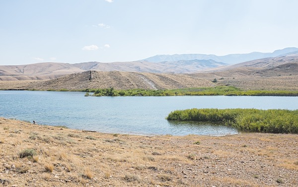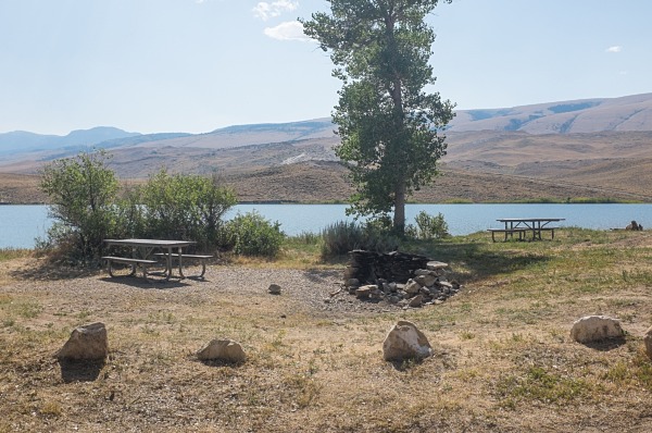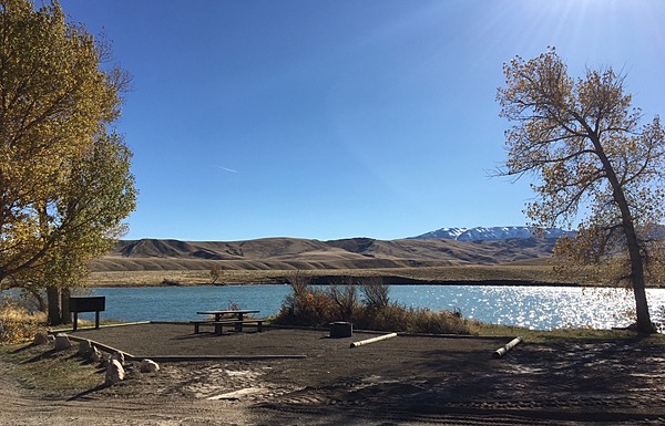Small Lakeside Campground at Arid Foothills of Bald Peak