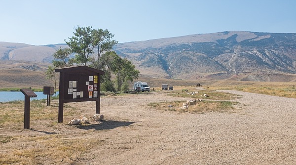 – a lightly-used trail that leads up to Bald Ridge. The area is prominent Antelope and Elk habitat. To get to the campground, turn off the Belfry Highway (WY-120) onto County Road 6RP (just down the road from Chief Joseph Scenic Byway, WY-296). Stay on the main road until you reach the fork marked with a large brown BLM “Hogan / Luce Reservoir Access” sign.