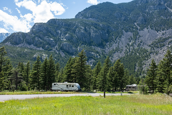 The campground is located at the end of Nye Road in the Stillwater Canyon. It is a beautiful locale with high rocky cliffs and a nearby waterfall,