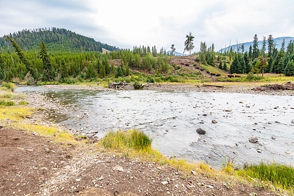 Cache Creek and a group of bison at the Cache Creek ford of the Lamar River Trail, Jacob W. Frank (NPS) photograph above.